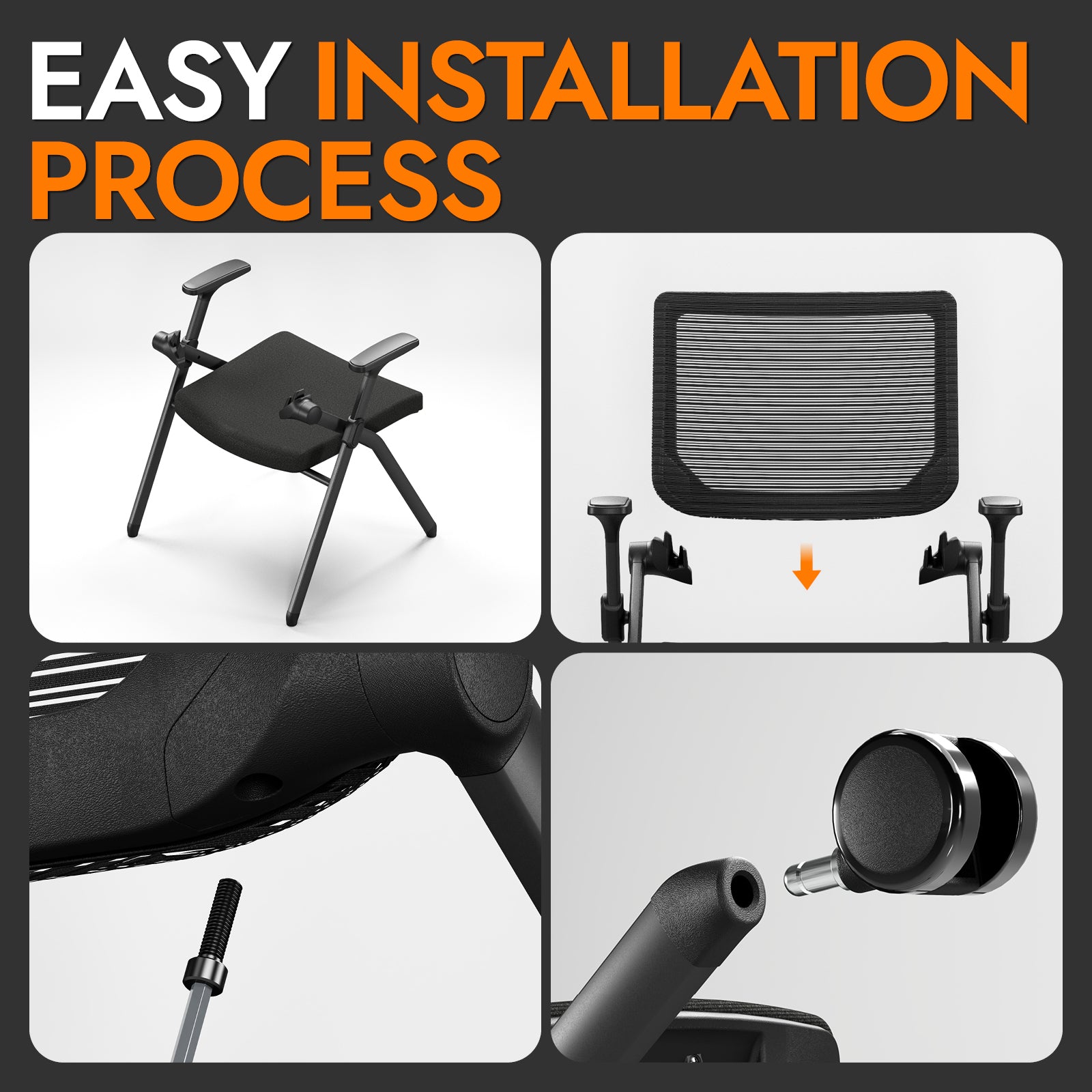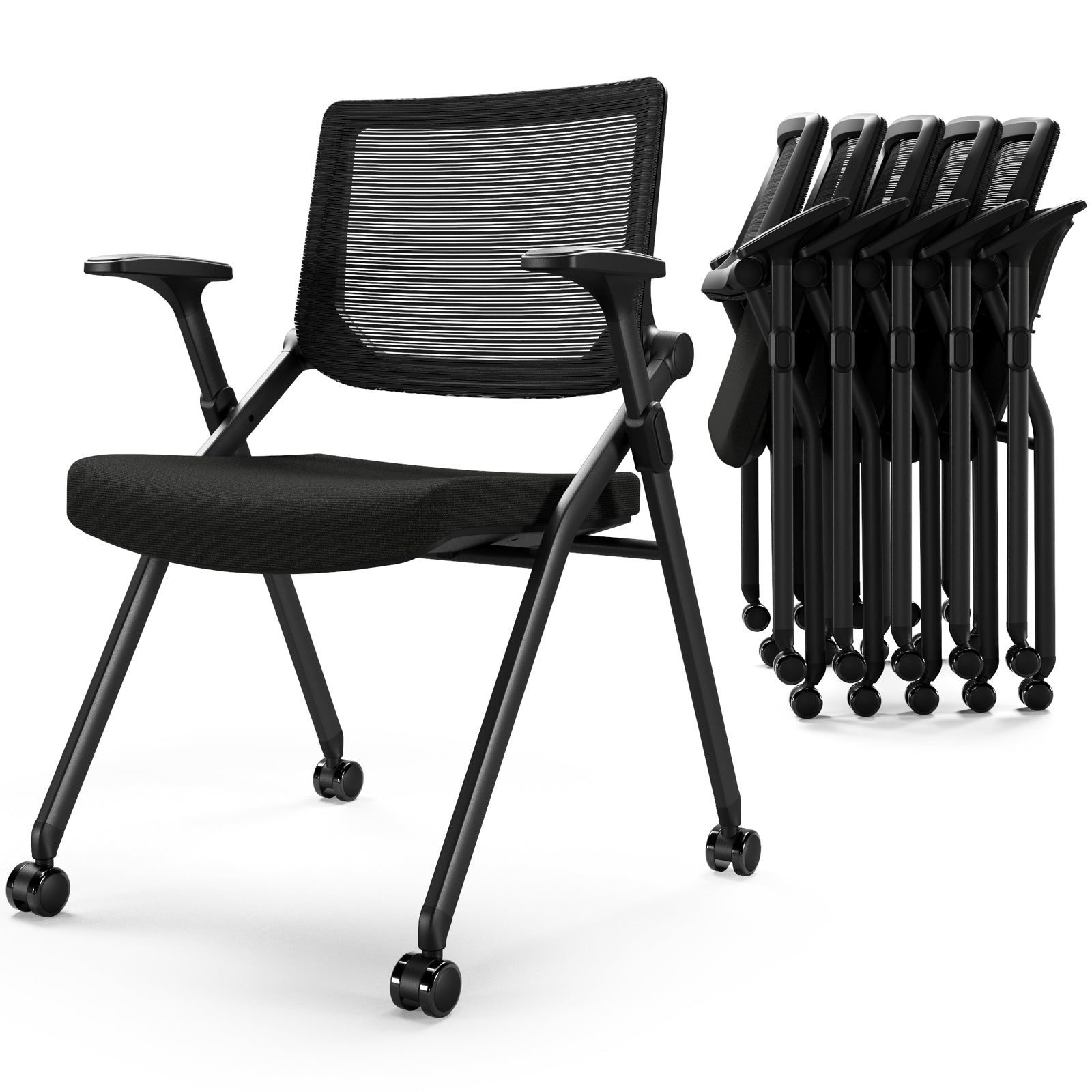 Foldable Office Chair Set of 2 with PU Wheels Ergonomic Mesh Bouncing Back, Stackable Conference Room Chair, Office Guest & Reception & Meeting Chair