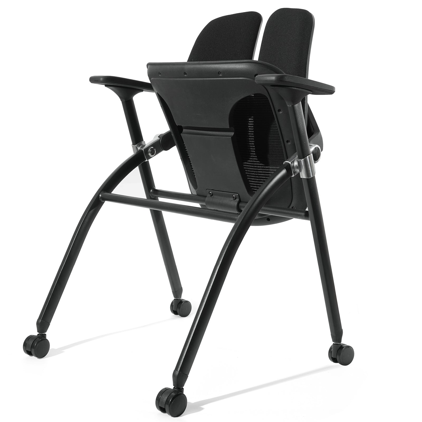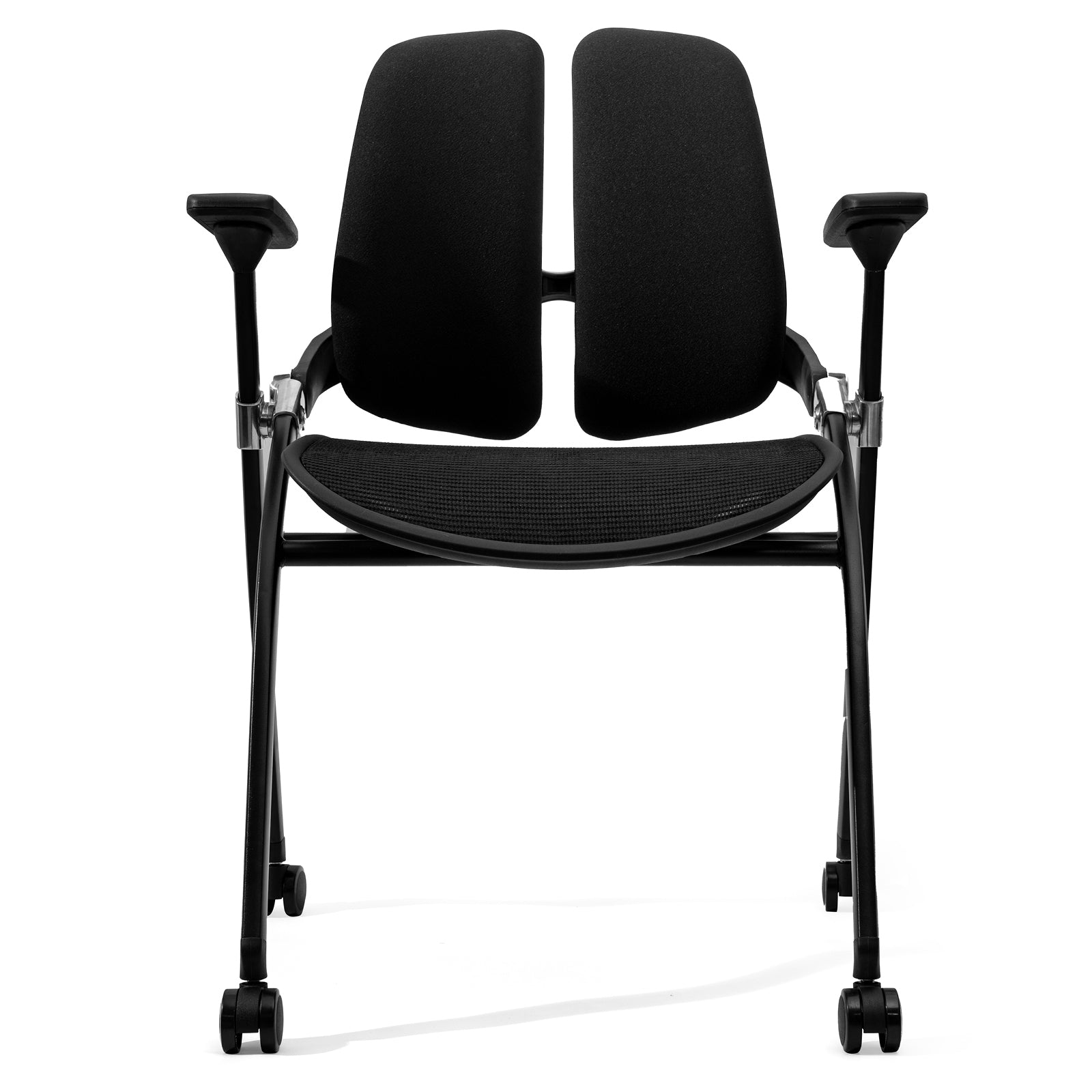 FYLICA Dual-Backrest Foldable Computer Chair, Folding Conference Room Chair with Dynamic Double Back Support, Breathable Mesh Seat & 360°Rolling Wheel, Foldable Chair Indoor (Black)